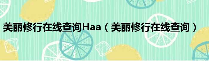 大家好,今天小六子来为大家解答以下的问题,关于美丽修行在线查询Haa,美丽修行在线查询这个很多人还不知道,现在让我们一起来看看吧!