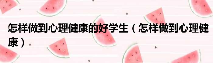 大家好,今天小六子来为大家解答以下的问题,关于怎样做到心理健康的好学生,怎样做到心理健康这个很多人还不知道,现在让我们一起来看看吧!