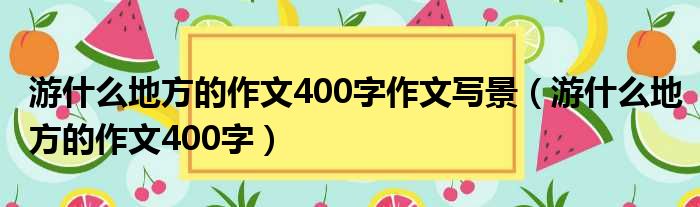 大家好,今天小六子来为大家解答以下的问题,关于游什么地方的作文400字作文写景,游什么地方的作文400字这个很多人还不知道,现在让我们一起来看看吧!