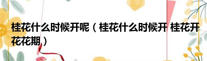 大家好,今天小六子来为大家解答以下的问题,关于桂花什么时候开呢,桂花什么时候开 桂花开花花期这个很多人还不知道,现在让我们一起来看看吧!