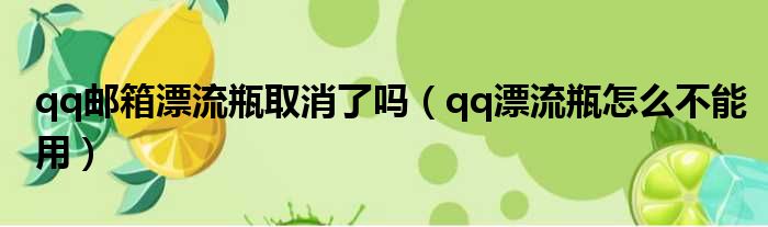 大家好,今天小六子来为大家解答以下的问题,关于qq邮箱漂流瓶取消了吗,qq漂流瓶怎么不能用这个很多人还不知道,现在让我们一起来看看吧!