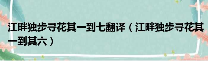 大家好,今天小六子来为大家解答以下的问题,关于江畔独步寻花其一到七翻译,江畔独步寻花其一到其六这个很多人还不知道,现在让我们一起来看看吧!