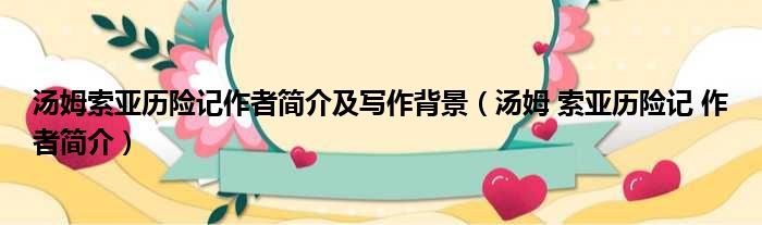 大家好,今天小六子来为大家解答以下的问题,关于汤姆索亚历险记作者简介及写作背景,汤姆 索亚历险记 作者简介这个很多人还不知道,现在让我们一起来看看吧!
