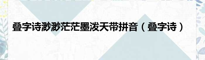 大家好,今天小六子来为大家解答以下的问题,关于叠字诗渺渺茫茫墨泼天带拼音,叠字诗这个很多人还不知道,现在让我们一起来看看吧!