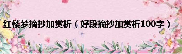 大家好,今天小六子来为大家解答以下的问题,关于红楼梦摘抄加赏析,好段摘抄加赏析100字这个很多人还不知道,现在让我们一起来看看吧!