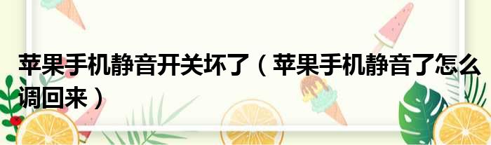 大家好,今天小六子来为大家解答以下的问题,关于苹果手机静音开关坏了,苹果手机静音了怎么调回来这个很多人还不知道,现在让我们一起来看看吧!