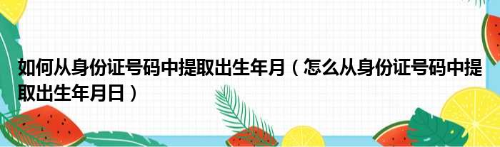 大家好,今天小六子来为大家解答以下的问题,关于如何从身份证号码中提取出生年月,怎么从身份证号码中提取出生年月日这个很多人还不知道,现在让我们一起来看看吧!