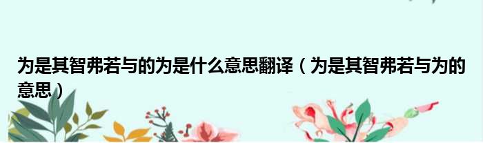大家好,今天小六子来为大家解答以下的问题,关于为是其智弗若与的为是什么意思翻译,为是其智弗若与为的意思这个很多人还不知道,现在让我们一起来看看吧!