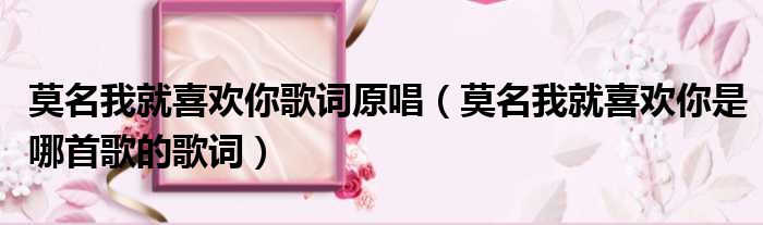 大家好,今天小六子来为大家解答以下的问题,关于莫名我就喜欢你歌词原唱,莫名我就喜欢你是哪首歌的歌词这个很多人还不知道,现在让我们一起来看看吧!