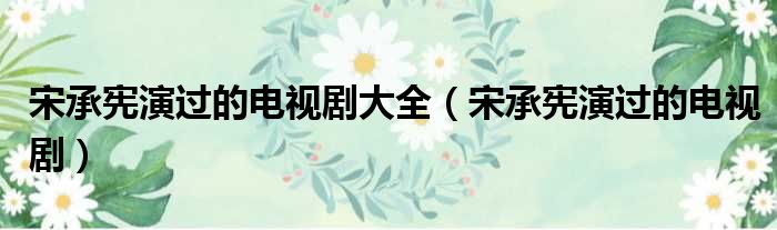 大家好,今天小六子来为大家解答以下的问题,关于宋承宪演过的电视剧大全,宋承宪演过的电视剧这个很多人还不知道,现在让我们一起来看看吧!