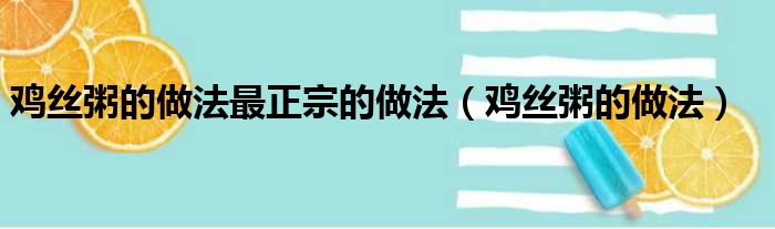 大家好,今天小六子来为大家解答以下的问题,关于鸡丝粥的做法最正宗的做法,鸡丝粥的做法这个很多人还不知道,现在让我们一起来看看吧!