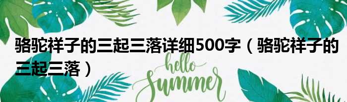 大家好,今天小六子来为大家解答以下的问题,关于骆驼祥子的三起三落详细500字,骆驼祥子的三起三落这个很多人还不知道,现在让我们一起来看看吧!