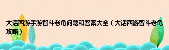 大家好,今天小六子来为大家解答以下的问题,关于大话西游手游智斗老龟问题和答案大全,大话西游智斗老龟攻略这个很多人还不知道,现在让我们一起来看看吧!