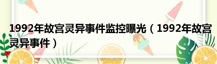 大家好,今天小六子来为大家解答以下的问题,关于1992年故宫灵异事件监控曝光,1992年故宫灵异事件这个很多人还不知道,现在让我们一起来看看吧!