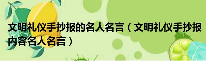 大家好,今天小六子来为大家解答以下的问题,关于文明礼仪手抄报的名人名言,文明礼仪手抄报内容名人名言这个很多人还不知道,现在让我们一起来看看吧!