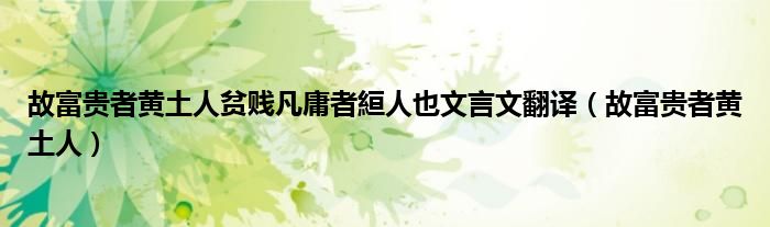 故富贵者黄土人贫贱凡庸者絙人也文言文翻译 故富贵者黄土人 网络整理 经验 2023-05-31 11:19:26 大家好,今天小六子来为大家解答以下的问题,关于故富贵者黄土人贫贱凡庸者絙人也文言文翻译,故富贵者黄土人这个很多人还不知道,现在让我们一起来看看吧!1、血统决定命运 黄土人是女娲的直系子孙 身上有着特殊的烙印。本文分享完毕,希望对你有所帮助。 声明:免责声明:本文来源网友投稿及网络整合仅代表文章作者的个人观点,与本站无关。其原创性、真实性以及文中陈述文字和内容未经本站证实,对本文以及其中全部或者部分内容文字的真实性、完整性和原创性本站不作任何保证或承诺,请读者仅作参考,并自行核实相关内容。投诉邮箱:1765130767@qq.com。 本文地址:https://www.anfu123.com/jingyan/94681.html