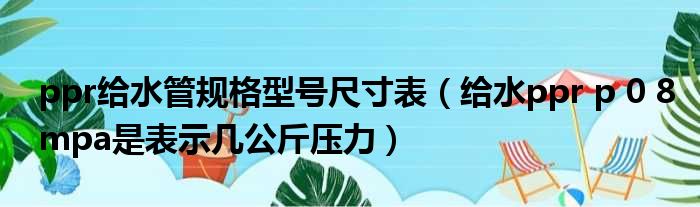 大家好,今天小六子来为大家解答以下的问题,关于ppr给水管规格型号尺寸表,给水ppr p 0 8mpa是表示几公斤压力这个很多人还不知道,现在让我们一起来看看吧!