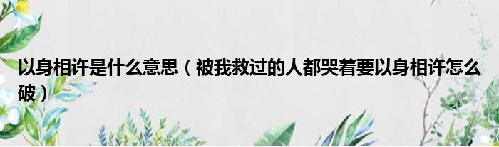 大家好,今天小六子来为大家解答以下的问题,关于以身相许是什么意思,被我救过的人都哭着要以身相许怎么破这个很多人还不知道,现在让我们一起来看看吧!