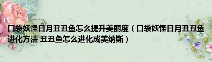 大家好,今天小六子来为大家解答以下的问题,关于口袋妖怪日月丑丑鱼怎么提升美丽度,口袋妖怪日月丑丑鱼进化方法 丑丑鱼怎么进化成美纳斯这个很多人还不知道,现在让我们一起来看看吧!