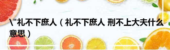大家好,今天小六子来为大家解答以下的问题,关于"礼不下庶人,礼不下庶人 刑不上大夫什么意思这个很多人还不知道,现在让我们一起来看看吧!
