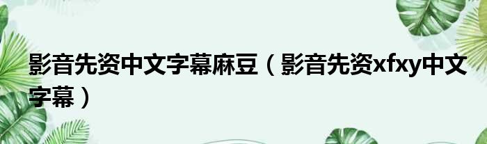 大家好,今天小六子来为大家解答以下的问题,关于影音先资中文字幕麻豆,影音先资xfxy中文字幕这个很多人还不知道,现在让我们一起来看看吧!