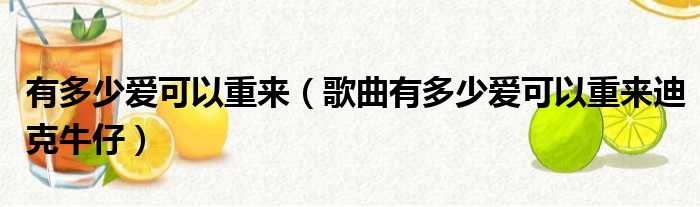 大家好,今天小六子来为大家解答以下的问题,关于有多少爱可以重来,歌曲有多少爱可以重来迪克牛仔这个很多人还不知道,现在让我们一起来看看吧!