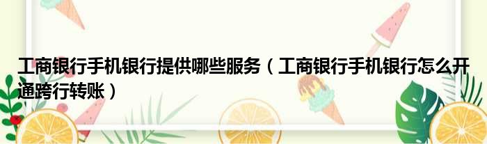 大家好,今天小六子来为大家解答以下的问题,关于工商银行手机银行提供哪些服务,工商银行手机银行怎么开通跨行转账这个很多人还不知道,现在让我们一起来看看吧!