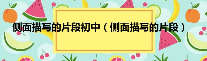 大家好,今天小六子来为大家解答以下的问题,关于侧面描写的片段初中,侧面描写的片段这个很多人还不知道,现在让我们一起来看看吧!