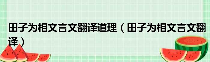 大家好,今天小六子来为大家解答以下的问题,关于田子为相文言文翻译道理,田子为相文言文翻译这个很多人还不知道,现在让我们一起来看看吧!