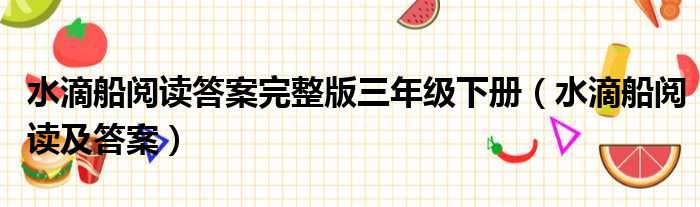 大家好,今天小六子来为大家解答以下的问题,关于水滴船阅读答案完整版三年级下册,水滴船阅读及答案这个很多人还不知道,现在让我们一起来看看吧!
