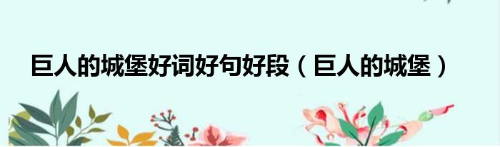 大家好,今天小六子来为大家解答以下的问题,关于巨人的城堡好词好句好段,巨人的城堡这个很多人还不知道,现在让我们一起来看看吧!