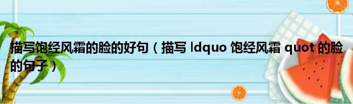 大家好,今天小六子来为大家解答以下的问题,关于描写饱经风霜的脸的好句,描写 ldquo 饱经风霜 quot 的脸的句子这个很多人还不知道,现在让我们一起来看看吧!