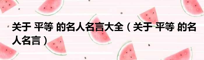 大家好,今天小六子来为大家解答以下的问题,关于关于 平等 的名人名言大全,关于 平等 的名人名言这个很多人还不知道,现在让我们一起来看看吧!