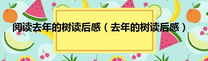 大家好,今天小六子来为大家解答以下的问题,关于阅读去年的树读后感,去年的树读后感这个很多人还不知道,现在让我们一起来看看吧!