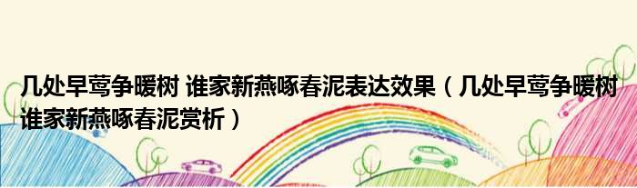 大家好,今天小六子来为大家解答以下的问题,关于几处早莺争暖树 谁家新燕啄春泥表达效果,几处早莺争暖树谁家新燕啄春泥赏析这个很多人还不知道,现在让我们一起来看看吧!