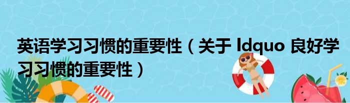 大家好,今天小六子来为大家解答以下的问题,关于英语学习习惯的重要性,关于 ldquo 良好学习习惯的重要性这个很多人还不知道,现在让我们一起来看看吧!