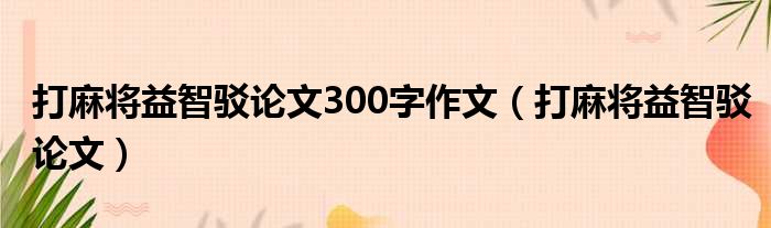 大家好,今天小六子来为大家解答以下的问题,关于打麻将益智驳论文300字作文,打麻将益智驳论文这个很多人还不知道,现在让我们一起来看看吧!