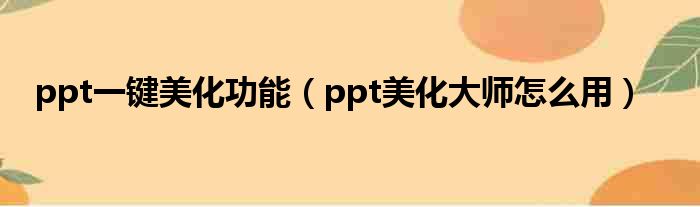 大家好,今天小六子来为大家解答以下的问题,关于ppt一键美化功能,ppt美化大师怎么用这个很多人还不知道,现在让我们一起来看看吧!