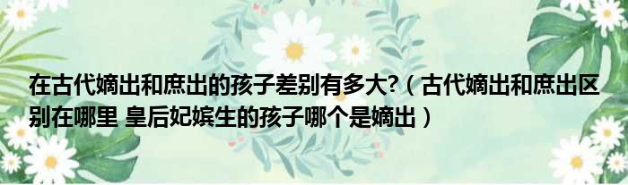 大家好,今天小六子来为大家解答以下的问题,关于在古代嫡出和庶出的孩子差别有多大?,古代嫡出和庶出区别在哪里 皇后妃嫔生的孩子哪个是嫡出这个很多人还不知道,现在让我们一起来看看吧!