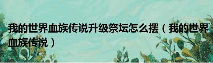 大家好,今天小六子来为大家解答以下的问题,关于我的世界血族传说升级祭坛怎么摆,我的世界血族传说这个很多人还不知道,现在让我们一起来看看吧!