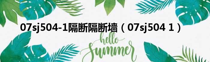 大家好,今天小六子来为大家解答以下的问题,关于07sj504-1隔断隔断墙,07sj504 1这个很多人还不知道,现在让我们一起来看看吧!