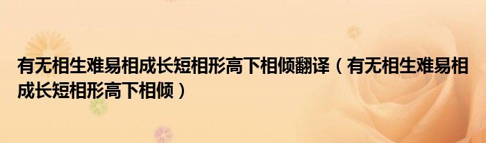 大家好,今天小六子来为大家解答以下的问题,关于有无相生难易相成长短相形高下相倾翻译,有无相生难易相成长短相形高下相倾这个很多人还不知道,现在让我们一起来看看吧!