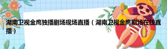 大家好,今天小六子来为大家解答以下的问题,关于湖南卫视金鹰独播剧场现场直播,湖南卫视金鹰剧场在线直播这个很多人还不知道,现在让我们一起来看看吧!