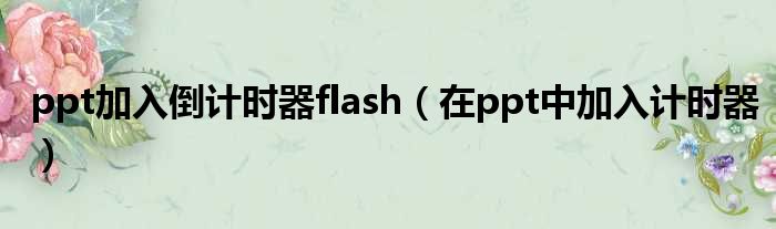 大家好,今天小六子来为大家解答以下的问题,关于ppt加入倒计时器flash,在ppt中加入计时器这个很多人还不知道,现在让我们一起来看看吧!