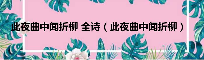 大家好,今天小六子来为大家解答以下的问题,关于此夜曲中闻折柳 全诗,此夜曲中闻折柳这个很多人还不知道,现在让我们一起来看看吧!