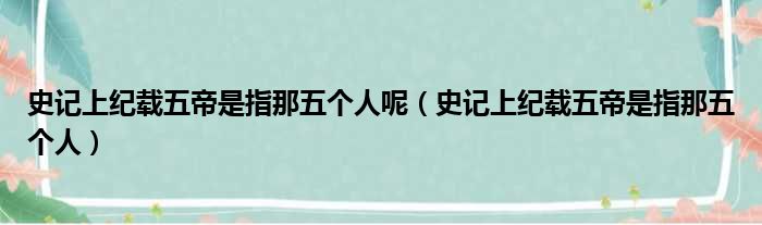 大家好,今天小六子来为大家解答以下的问题,关于史记上纪载五帝是指那五个人呢,史记上纪载五帝是指那五个人这个很多人还不知道,现在让我们一起来看看吧!