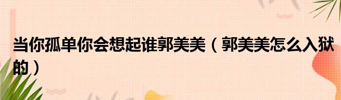 大家好,今天小六子来为大家解答以下的问题,关于当你孤单你会想起谁郭美美,郭美美怎么入狱的这个很多人还不知道,现在让我们一起来看看吧!