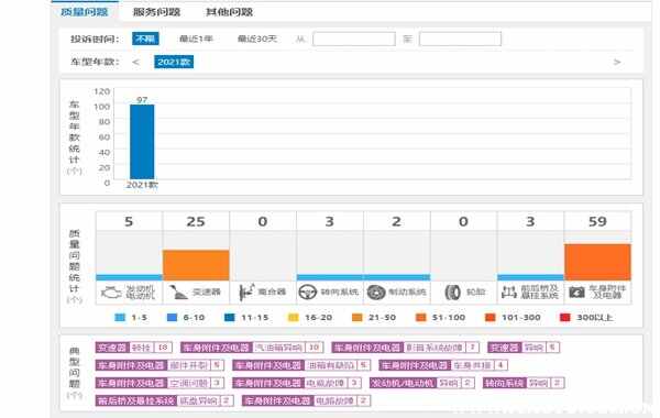 首先来看看它在车质网的数据,我们可以看到2021款的林肯航海家收到的质量问题投诉只有97条,对比它的销量来看只占了很少一部分,说明大多数的航海家车主都没有遇到很明显的质量缺陷问题。而且质量投诉主要集中在变速器及车身附件及电器上,都是一些比较普通的问题,比如变速器异响、一些零部件故障等。总而言之在质量方面,林肯航海家是比较值得我们信赖的,口碑也比较不错。
