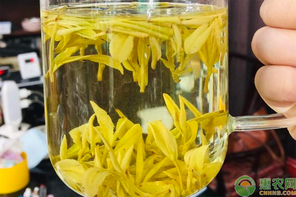 黄金茶中的茶多酚含量非常低,氨基酸含量是普通绿茶的三倍,所以好的黄金茶口感鲜爽,回甘快,饱满度高,喉韵悠长,再加上黄金茶独特的观赏价值,是难得的好茶。黄金茶的金黄颜色是天然的黄色,并非发酵而来的黄色,所以,黄金茶无论是在干茶还是叶底茶汤都是黄色,只是明亮度略有不同,即使冲泡之后的茶汤也是非常明黄透亮,引人垂涎。