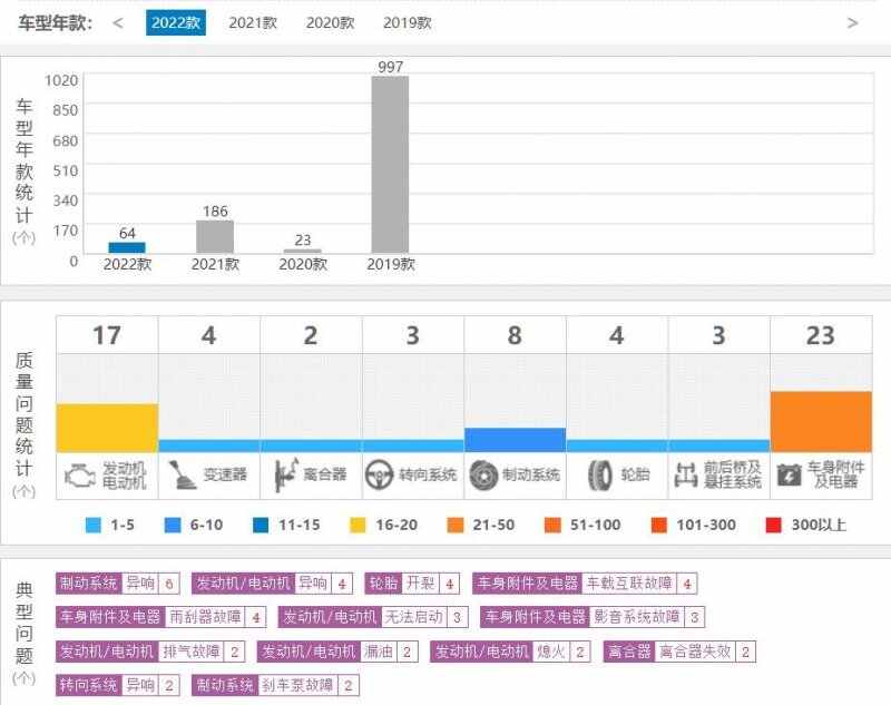 以捷达销量最多的捷达VS5车型为例,同时参考车质网提供的数据,2022款捷达VS5仅有64条投诉,问题主要集中在制动系统异响、发动机/变速箱异响和车载互联故障问题上,相较于2019款车型,2022款的投诉量明显要更少,也从侧面反映了质量方面也有在提高。